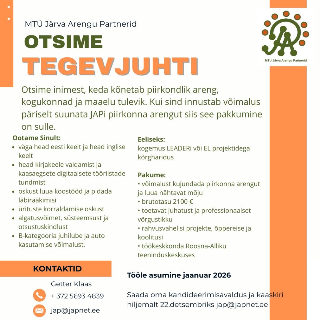MTÜ JÄRVA ARENGU PARTNERID ON LEADER TEGEVUSRÜHM